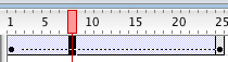Als alles goed is gegaan, zie je een pijl tussen frame 1 en 25 in een BLAUW vlak: